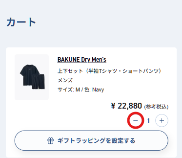 (2)削除したい商品の 「-(マイナス)」ボタン を選択します。